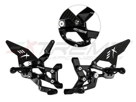 Extreme Components GP EVO Rearsets in Black Aluminum/Carbon for Ducati Panigale V4 (2020-23)
